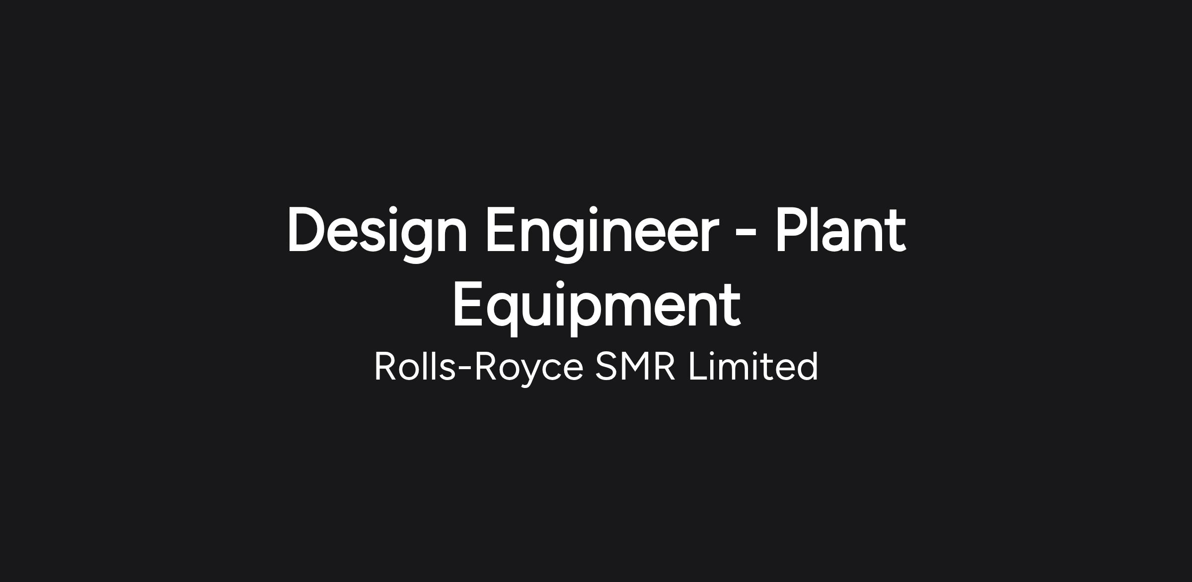 As a Design Engineer – Plant Equipment, you will work within the Miscellaneous Plant Equipment team to deliver a wide range of SMR products. You will take ownership of allocated products, working with a broad stakeholder group to understand requirements, apply modularisation and standardisation principles, and support sourcing, development and delivery activities.