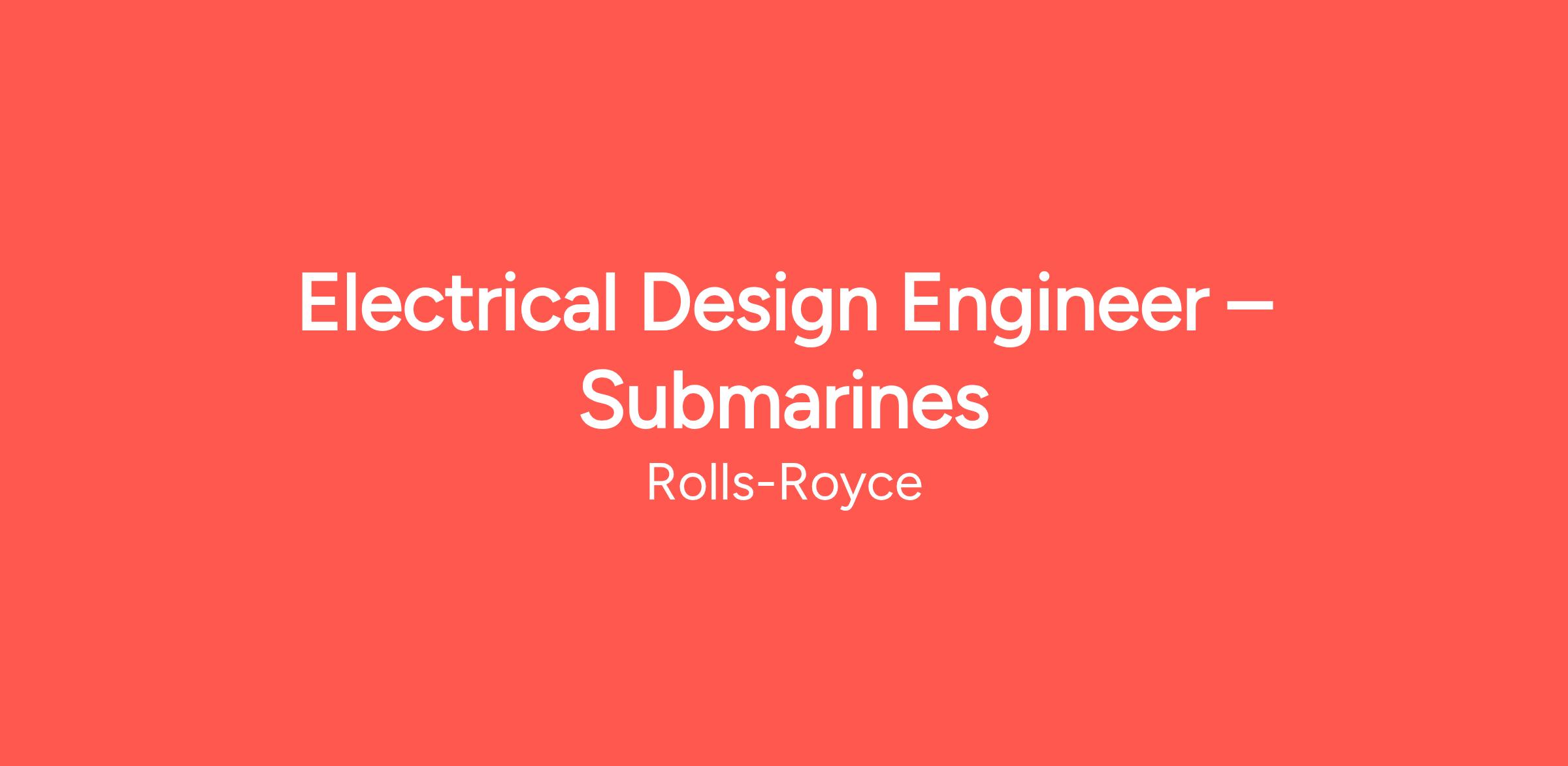 We have an exciting opportunity for an Electrical Design Engineer to join Rolls-Royce Submarines.
