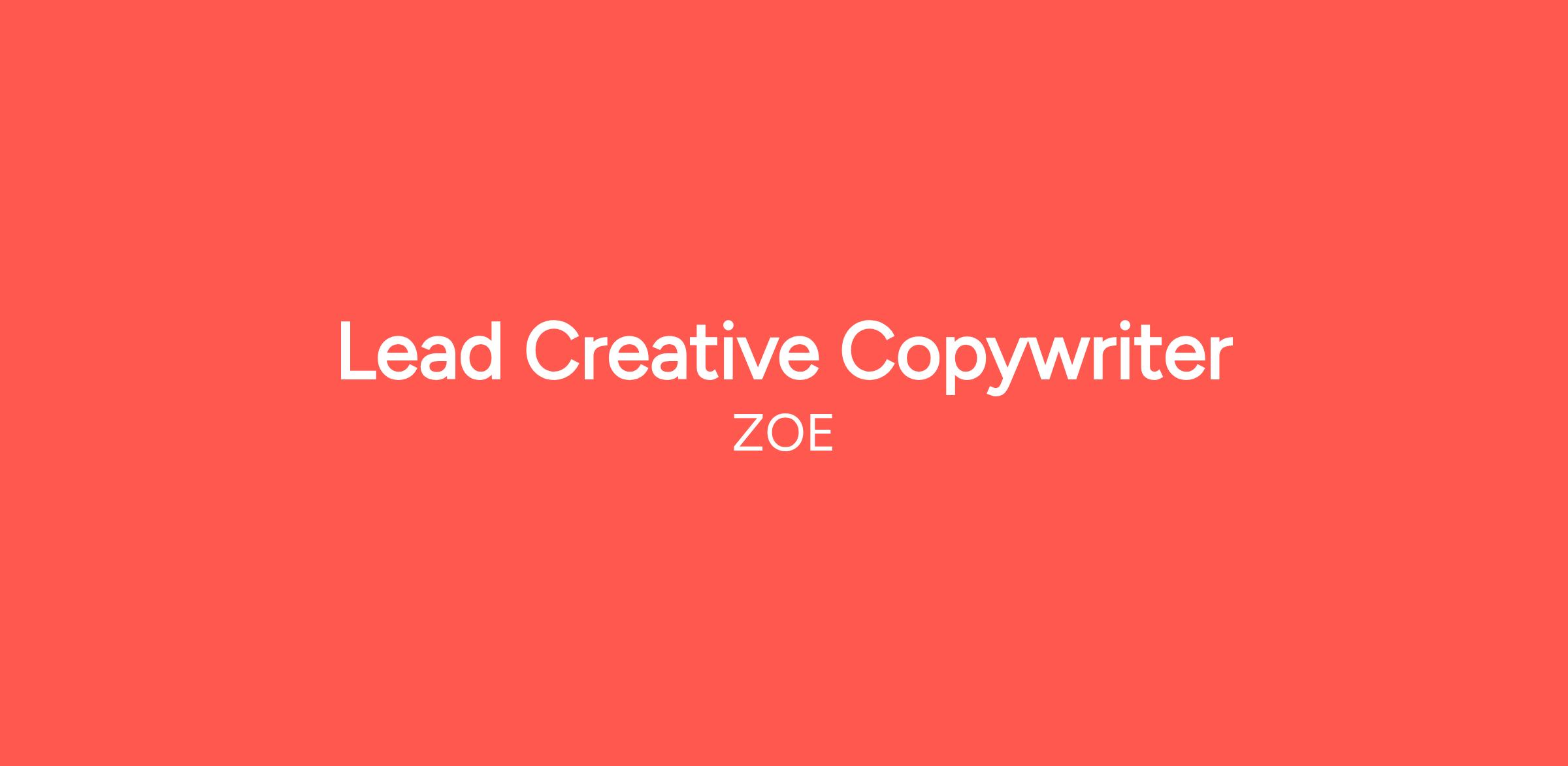We have the science, the systems, and the data. Now, we need the "spark." We’re looking for a Lead Creative Copywriter to move ZOE from clear to compelling. You’ll lead our biggest campaign ideas and ensure our "red thread" of storytelling runs from a TV spot down to a performance ad.