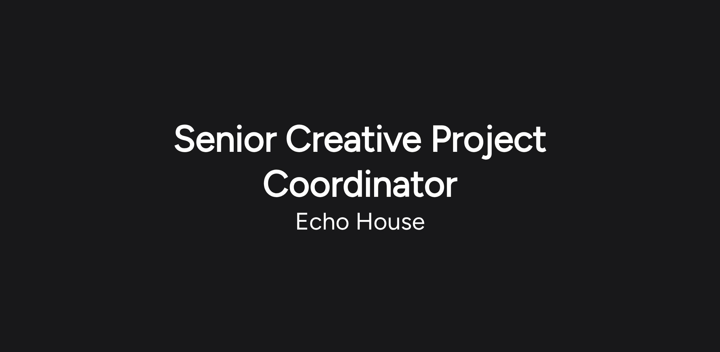 This full-time role will involve working closely within a creative project team hub composed of the Creative Director and a Creative Project Manager. Together, you will be coordinating a wide variety of projects for one of Echo’s longest standing and prestigious Luxury Retail clients, as well as additional work for the Creative Director, who works with new clients and new creative briefs.