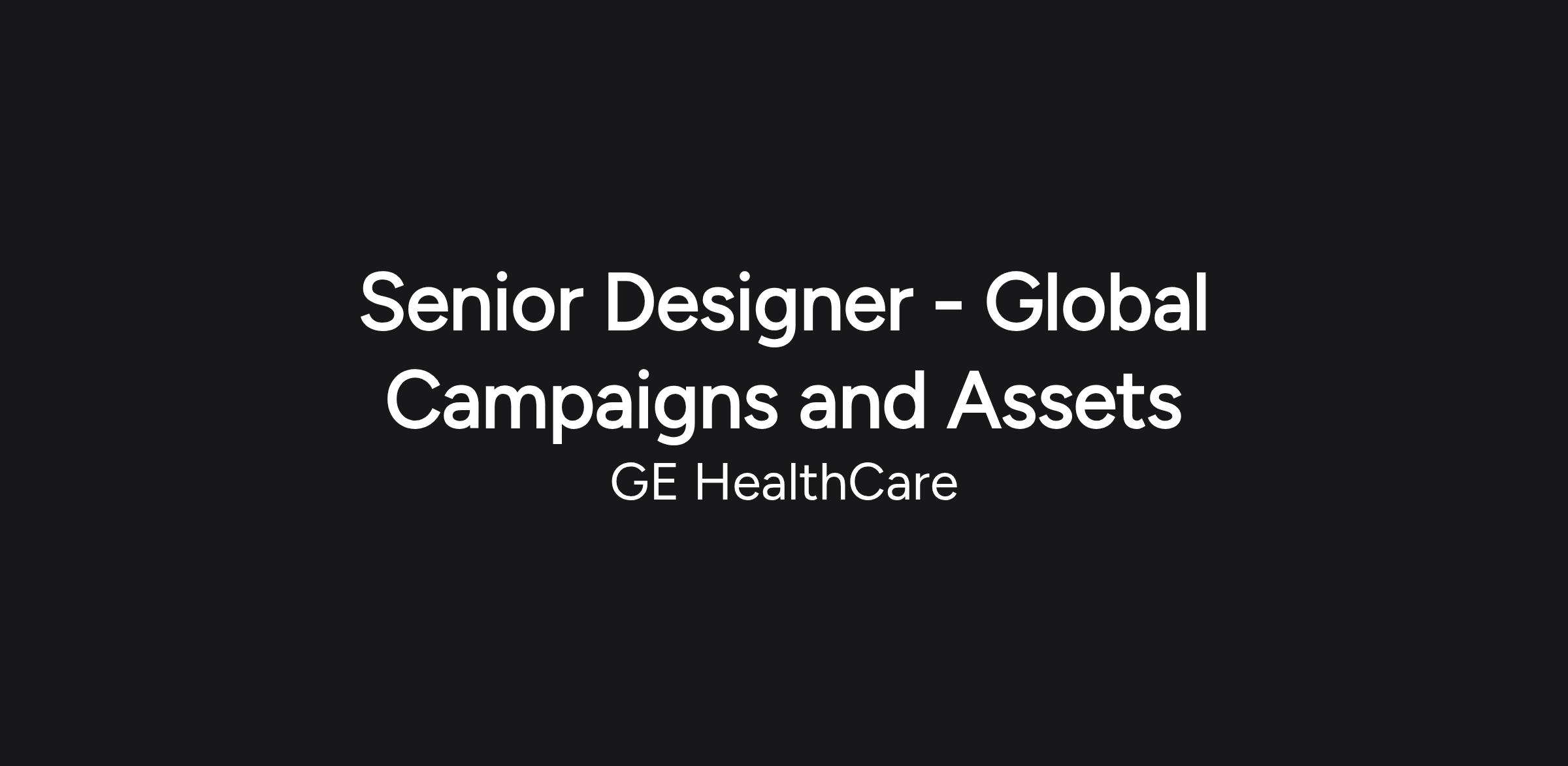 The Senior Designer – Global Campaigns and Assets will serve as a creative visionary and strategic leader responsible for the visual evolution of the GE HealthCare brand. In this role, you will translate GE HealthCare’s purpose, “To create a world where healthcare has no limits,” into powerful, consistent, and high-impact visual experiences across all digital and physical touchpoints. You will be a hands-on creative leader focused on human-centered design, ensuring our complex medical and pharmaceutical solutions are humanized through storytelling that reinforces our role as a global healthcare partner. Reporting to the Senior Director, Global Marketing, you will balance business objectives with creative excellence to drive measurable impact and improve patient outcomes.