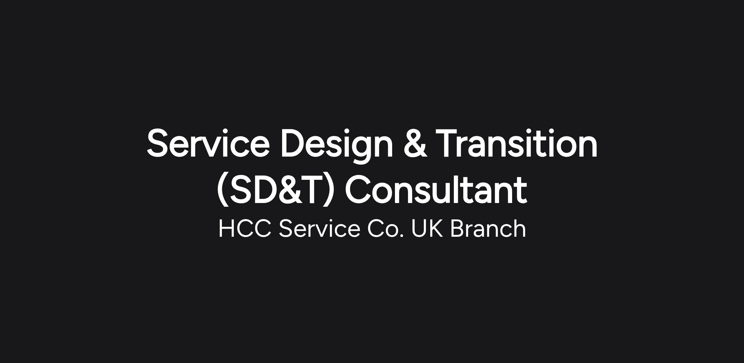 Service Design & Transition (SD&T) Consultant (Outside IR35 Contract)